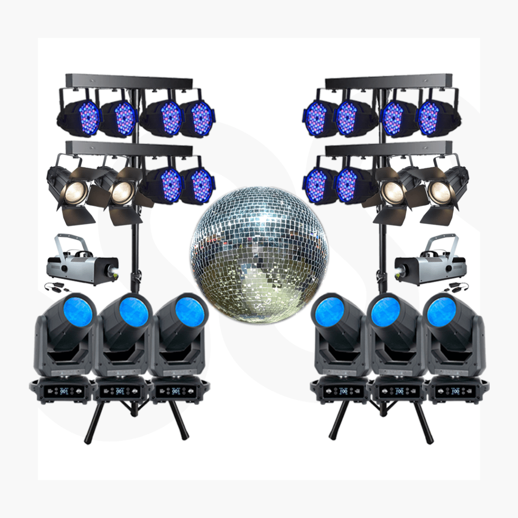 12 Parled + 4 Fresnel + 6 Beam + 1 Disco Ball + 2 Smoke Gun